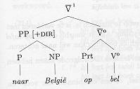 Ik neem hier een V'-cluster aan waar PP[+DIR] als dochter optreedt.