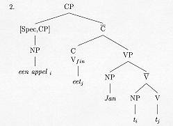 De volgorde van complementen werd aanvankelijk vastgelegd in het subcategorisatieframe. Nu volgt deze volgorde echter uit principes.