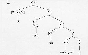 Stel dat in het V'-domein een NP wordt gevonden: een appel.
