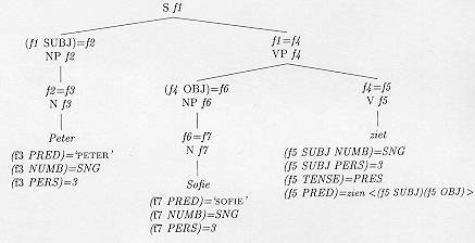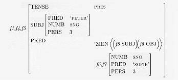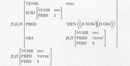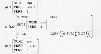 Voorbeeld: (f5 SUBJ NUMB)=SNG => f5 [SUBJ [NUMB SNG]]